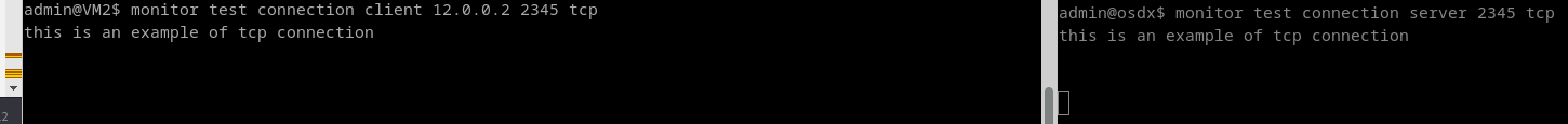 The monitor test connection command performs a connection test through the transport layer. This tool is useful to monitor the status of a connection for different protocols. These protocols are tcp, udp and ssl. We also need to specify if the device will work as server or client (for client mode, address server is mandatory) and the port the server will be listening to. For more information, please refer to site.